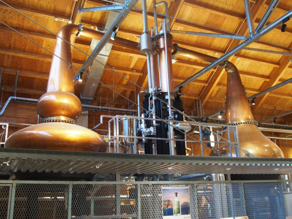 2回の蒸溜にはポットスチルという蒸溜釜を使い、このポットスチルに蒸溜所それぞれのこだわりが表れているそう。