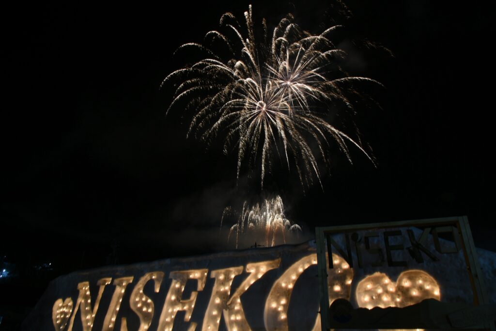 JRニセコ駅前から市街地に向かっての沿道にもろうそくがともり、大きなNISEKOの文字の雪像にもろうそくがともります。さらに、最終日の2月15日(日曜日)19:00から、NISEKOの文字の雪像の真上に花火もあがります。短い時間ですが、雪の中の花火を、綺羅乃湯の温泉帰りに楽しんでみませんか?