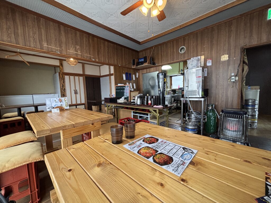 手づくり感がある店内の様子。左側にビールケースを使ったイスが見える