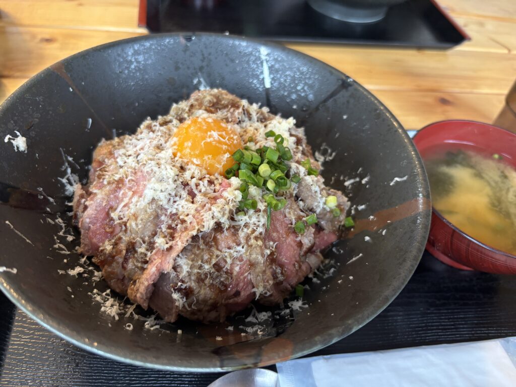 ロース芯を使用したこだわりの一品、北海道牛ステーキ丼